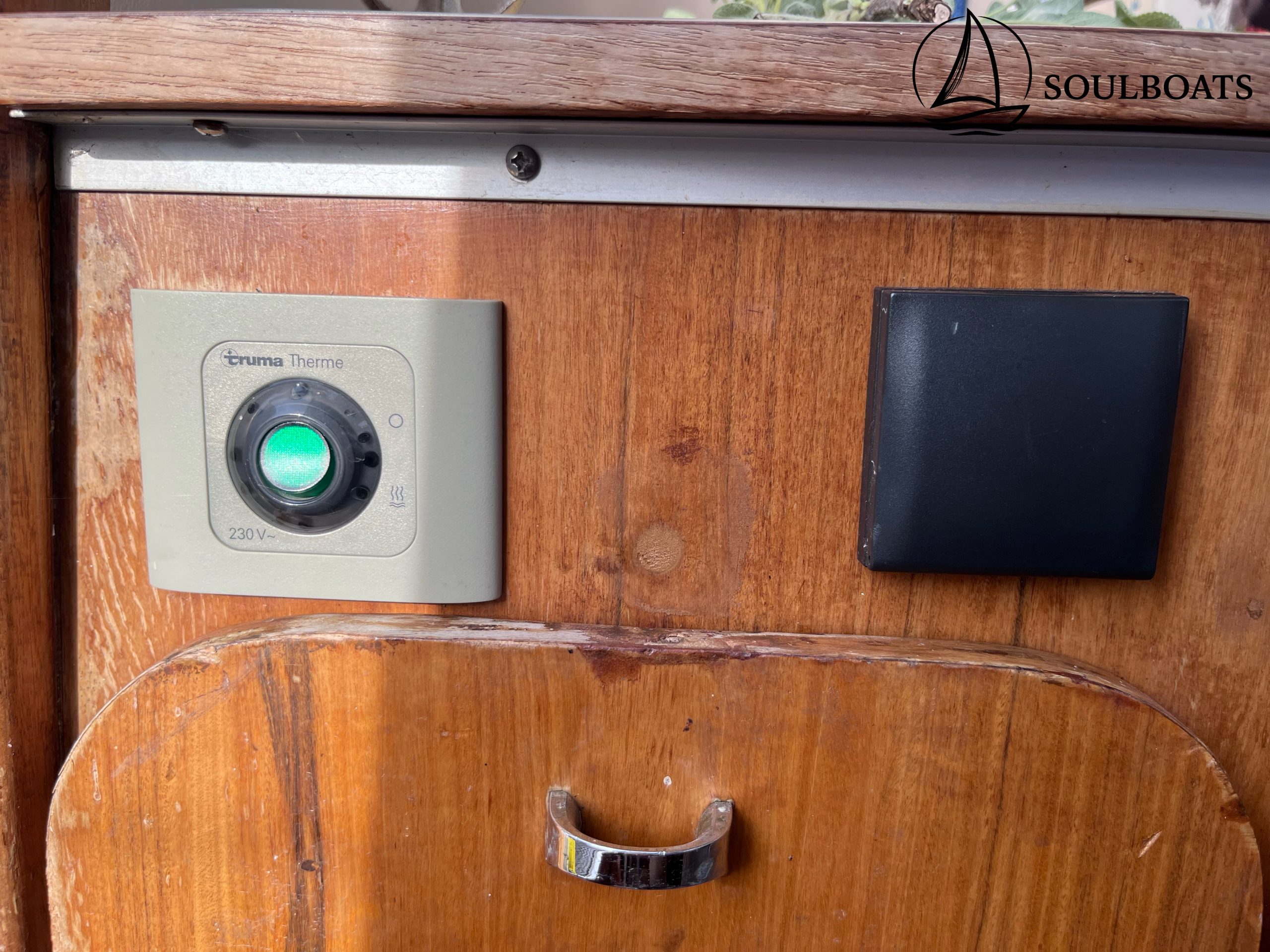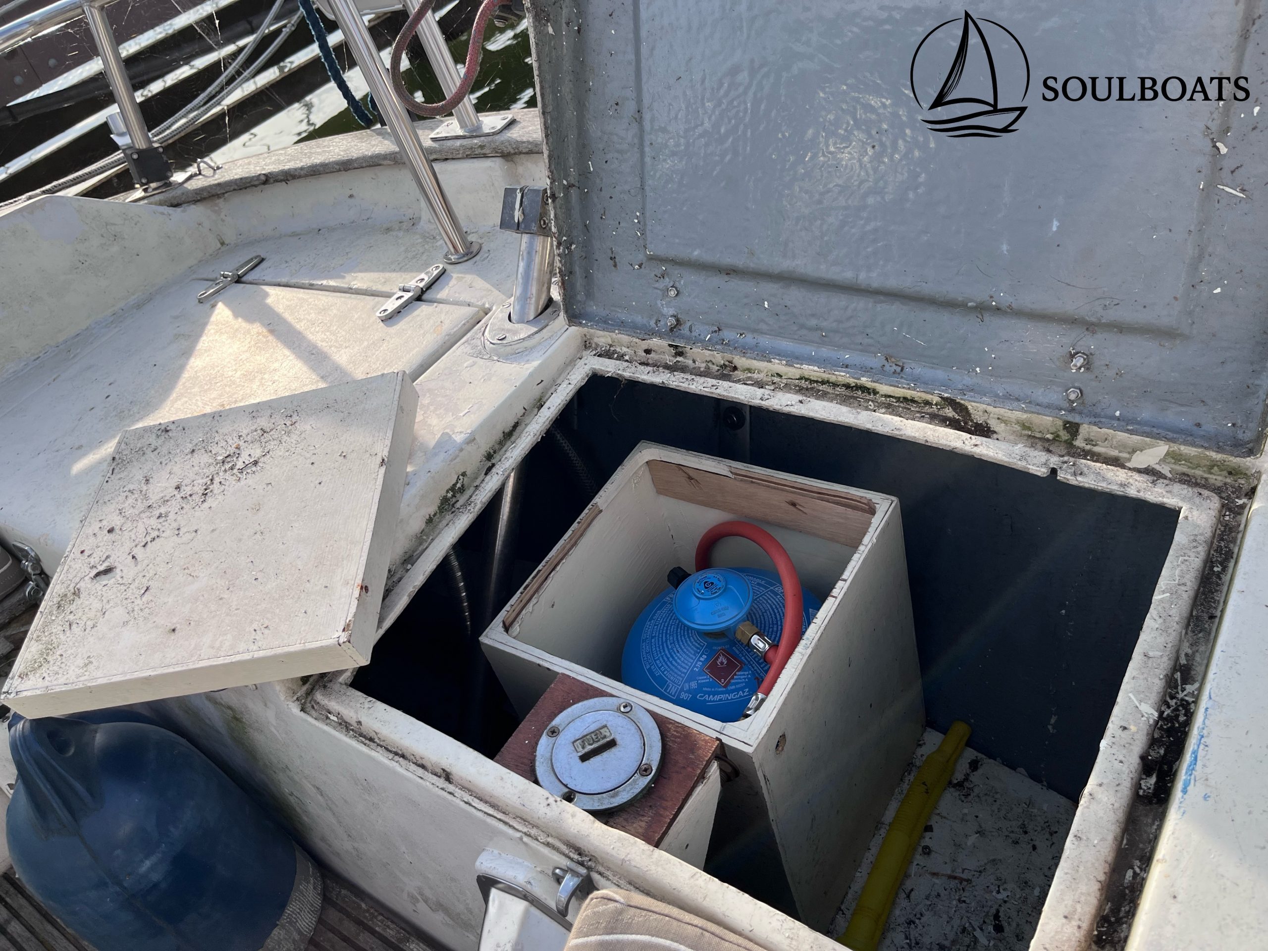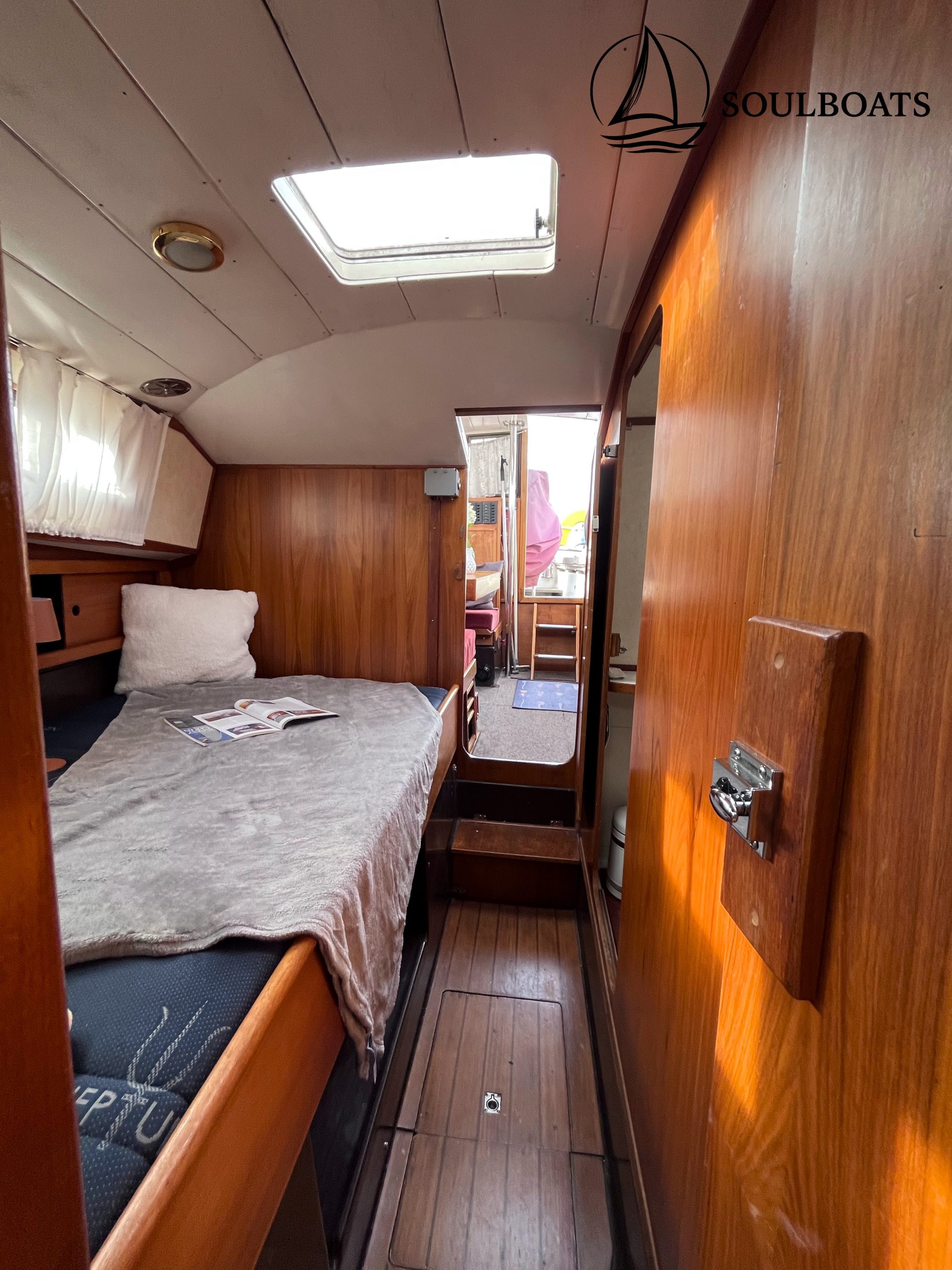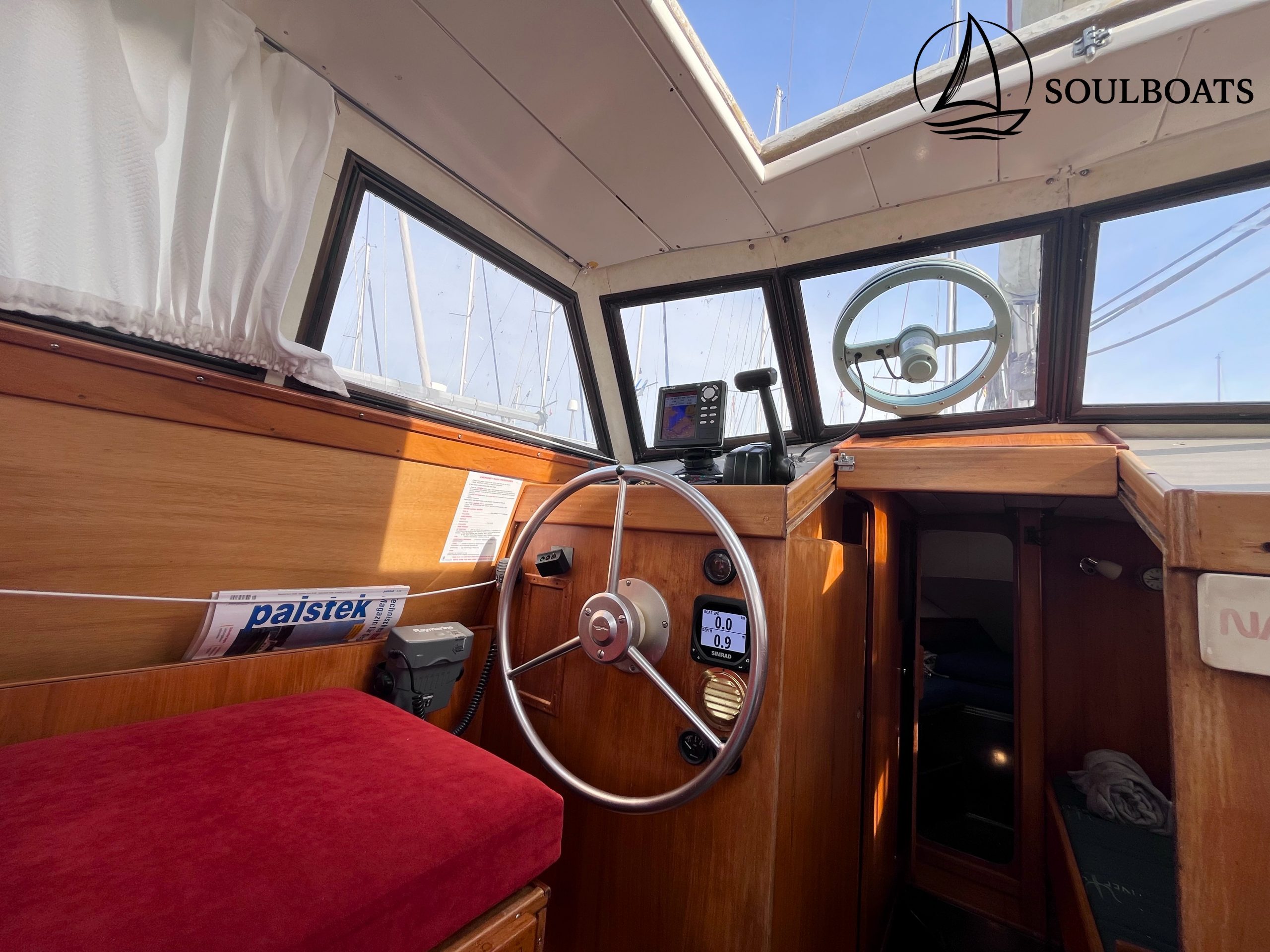 Technisch befindet sich das Schiff in ausgezeichnetem Zustand, alle Geräte sind funktionsfähig. Optisch innen könnten kleinere Lackierarbeiten vorgenommen werden. Außen, am Deck, hat ein Vorbesitzer versucht, das Schiff in hellem Weiß erstrahlen zu lassen; die Farbe löst sich jedoch inzwischen ab. Die Reste lassen sich problemlos entfernen, und darunter kommt das originale, gut erhaltene Gelcoat zum Vorschein.