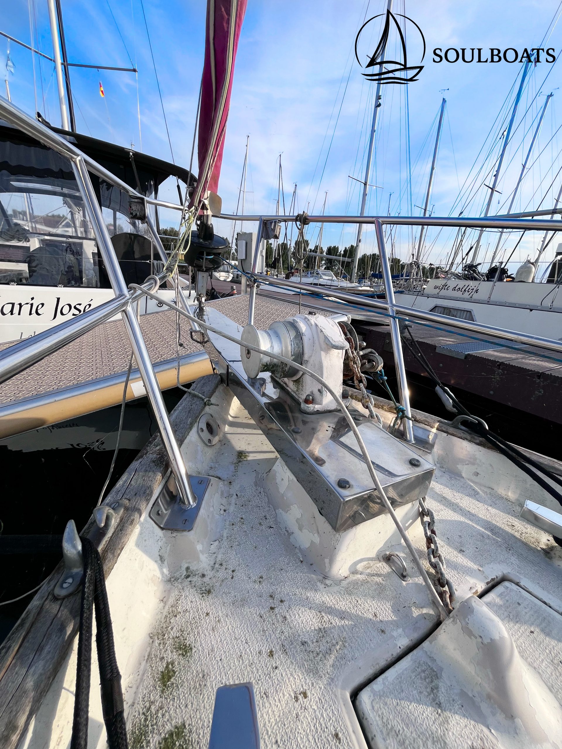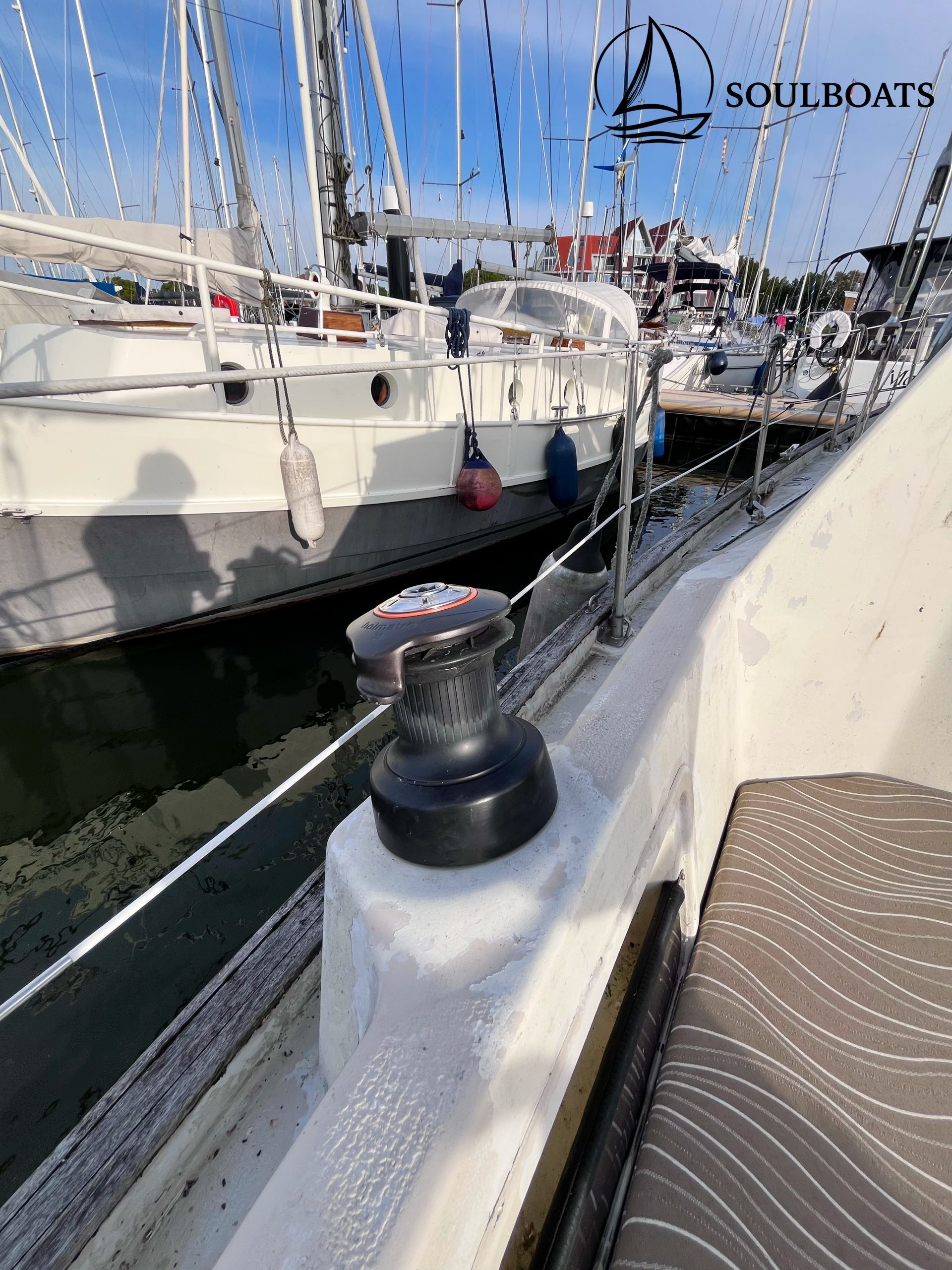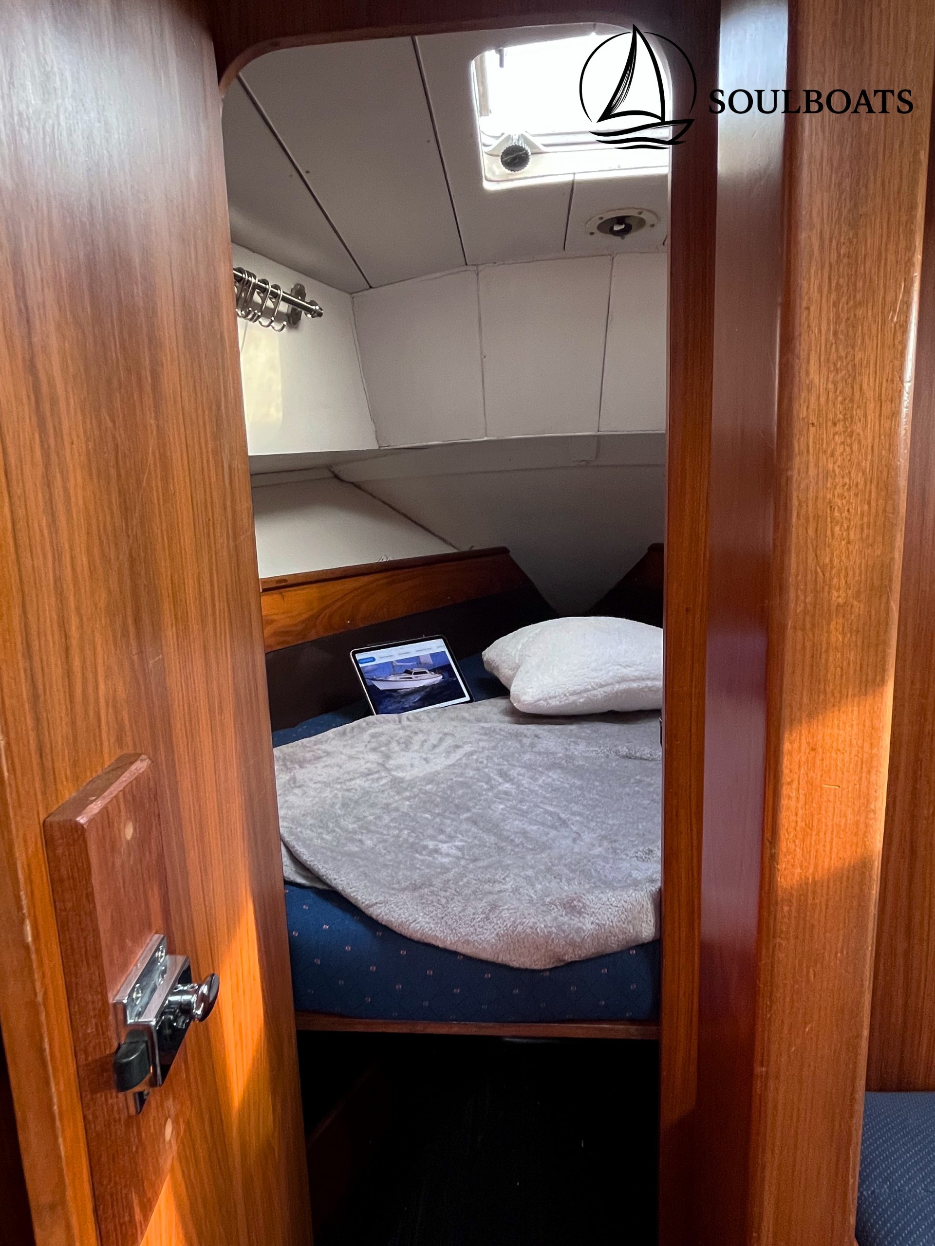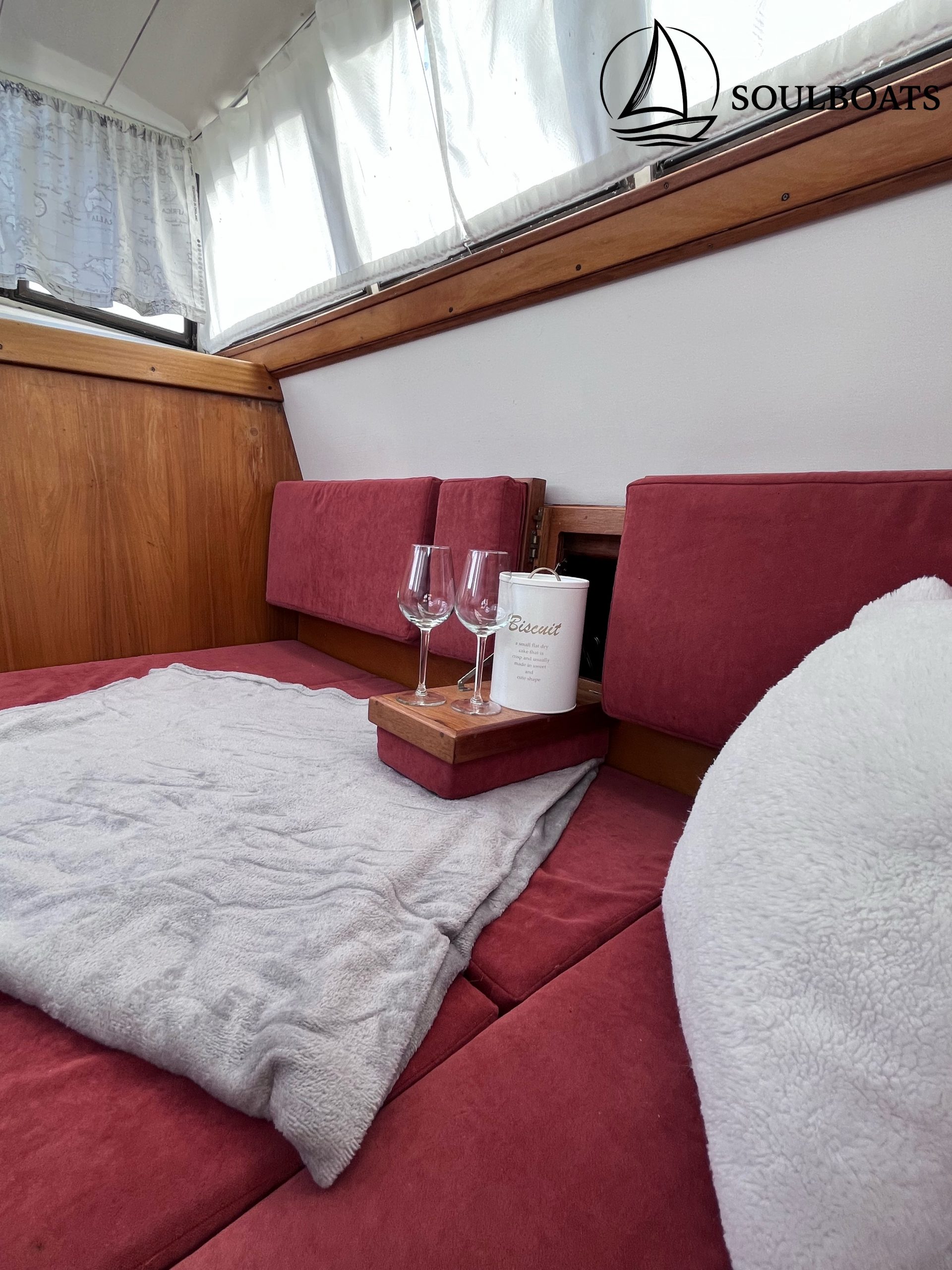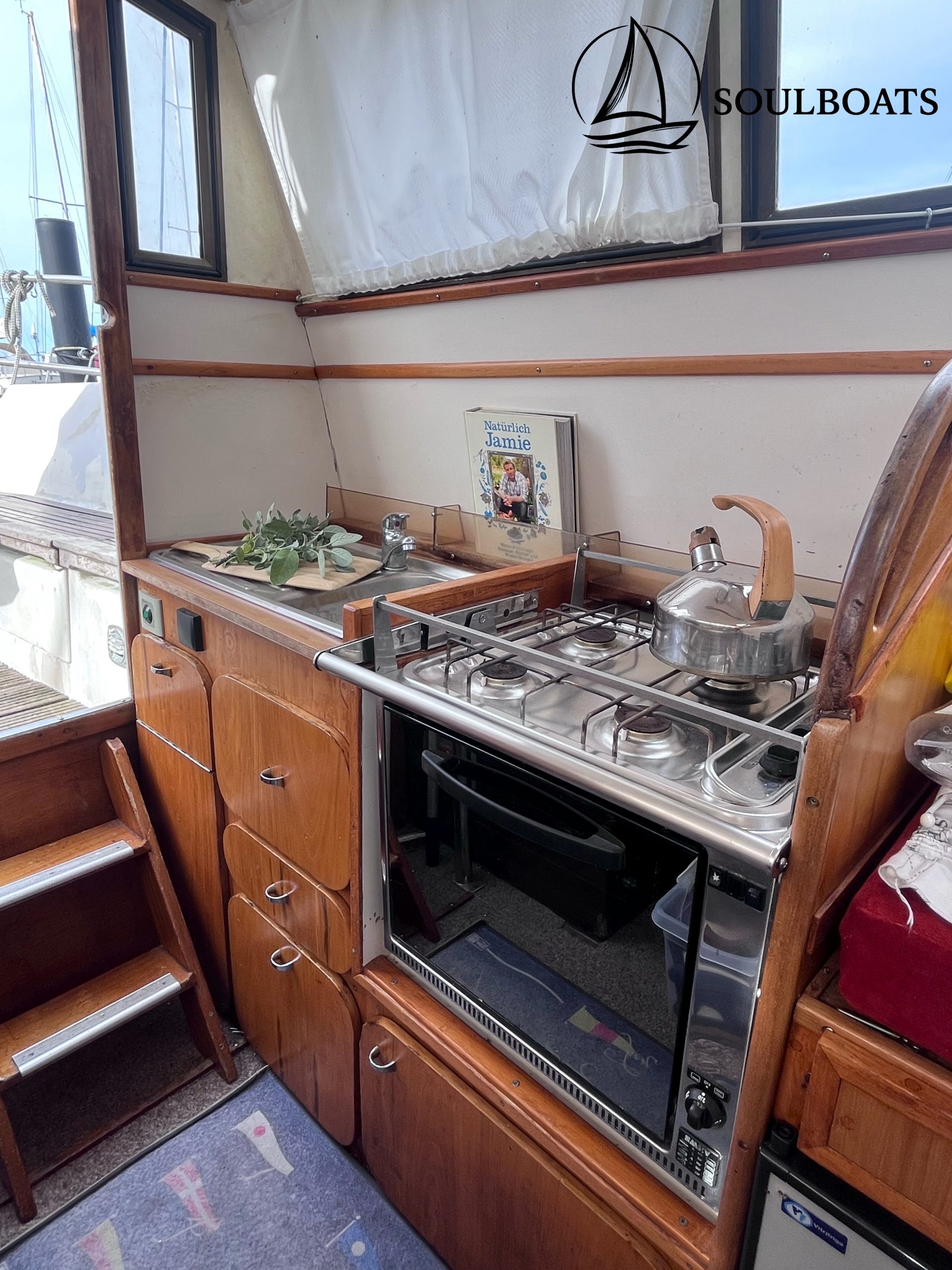 Technisch befindet sich das Schiff in ausgezeichnetem Zustand, alle Geräte sind funktionsfähig. Optisch innen könnten kleinere Lackierarbeiten vorgenommen werden. Außen, am Deck, hat ein Vorbesitzer versucht, das Schiff in hellem Weiß erstrahlen zu lassen; die Farbe löst sich jedoch inzwischen ab. Die Reste lassen sich problemlos entfernen, und darunter kommt das originale, gut erhaltene Gelcoat zum Vorschein.