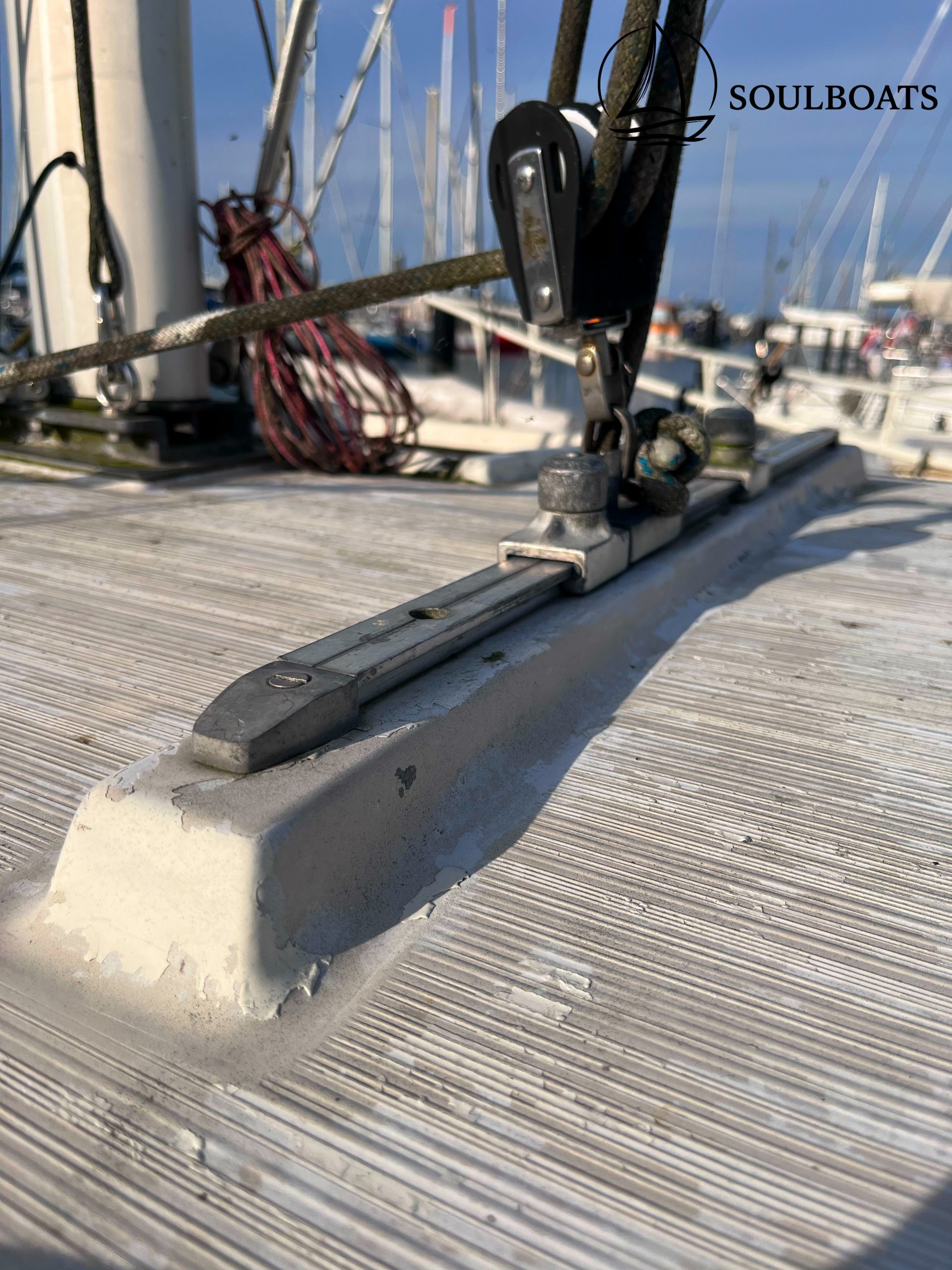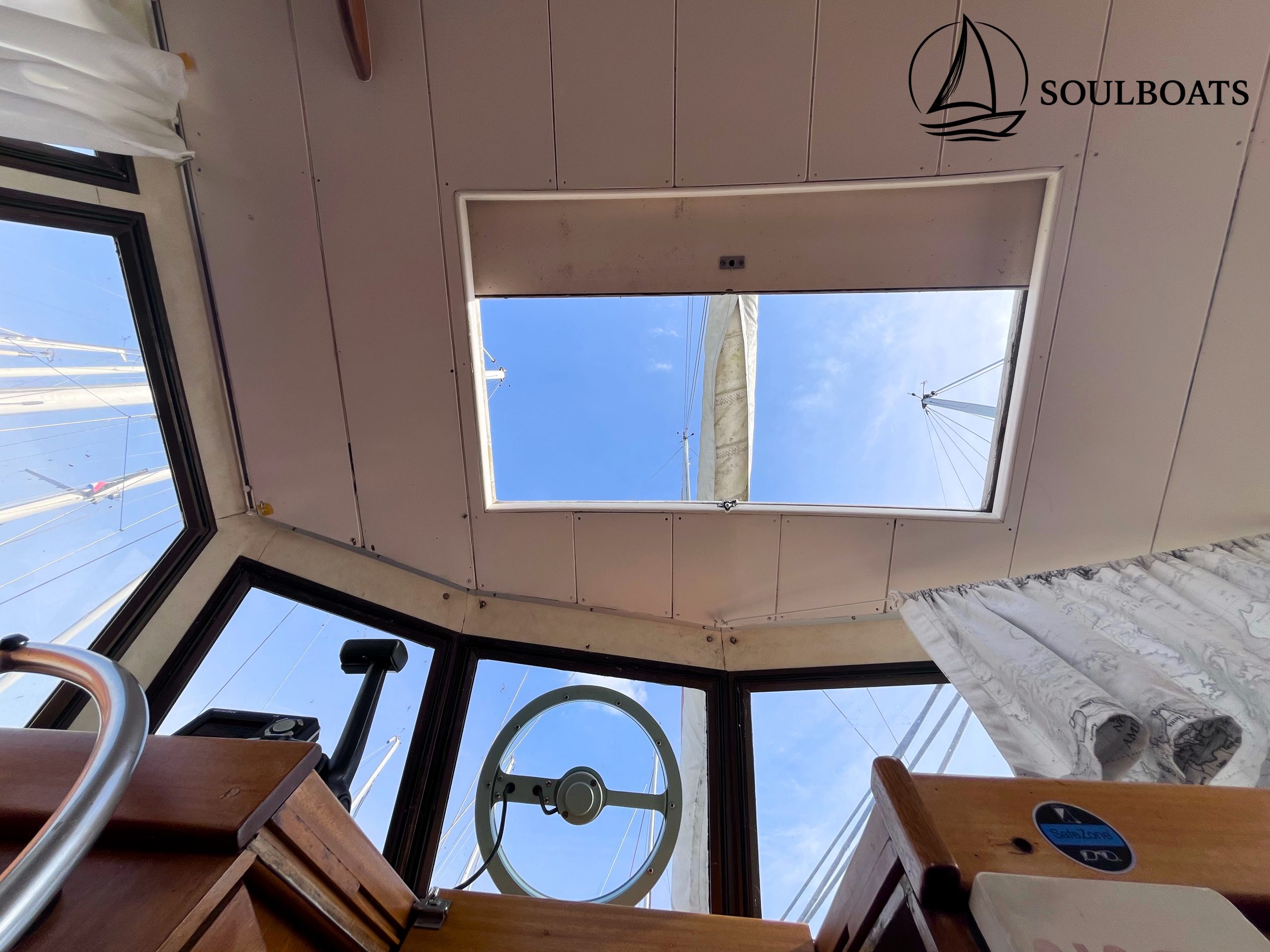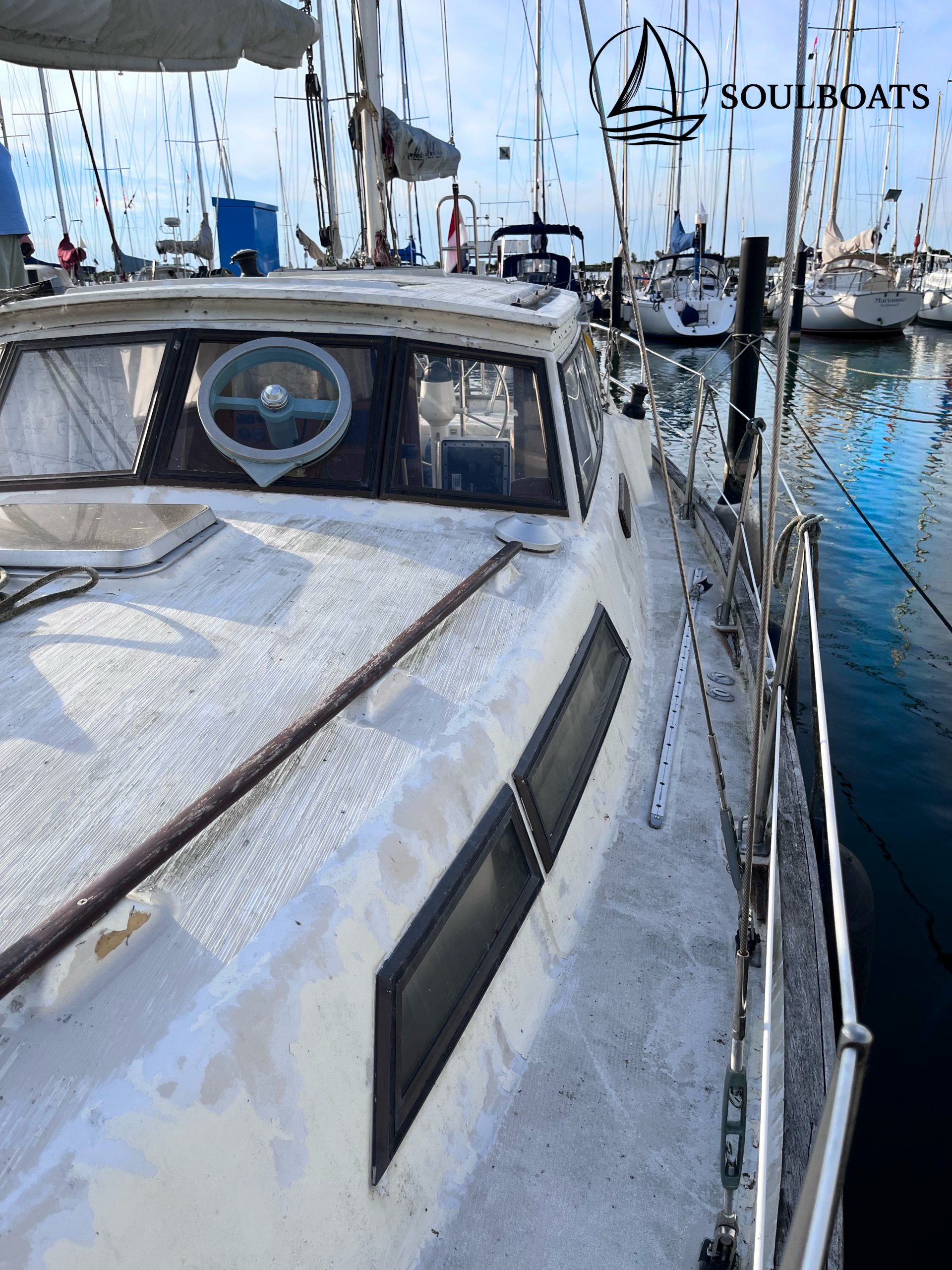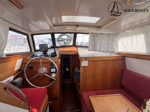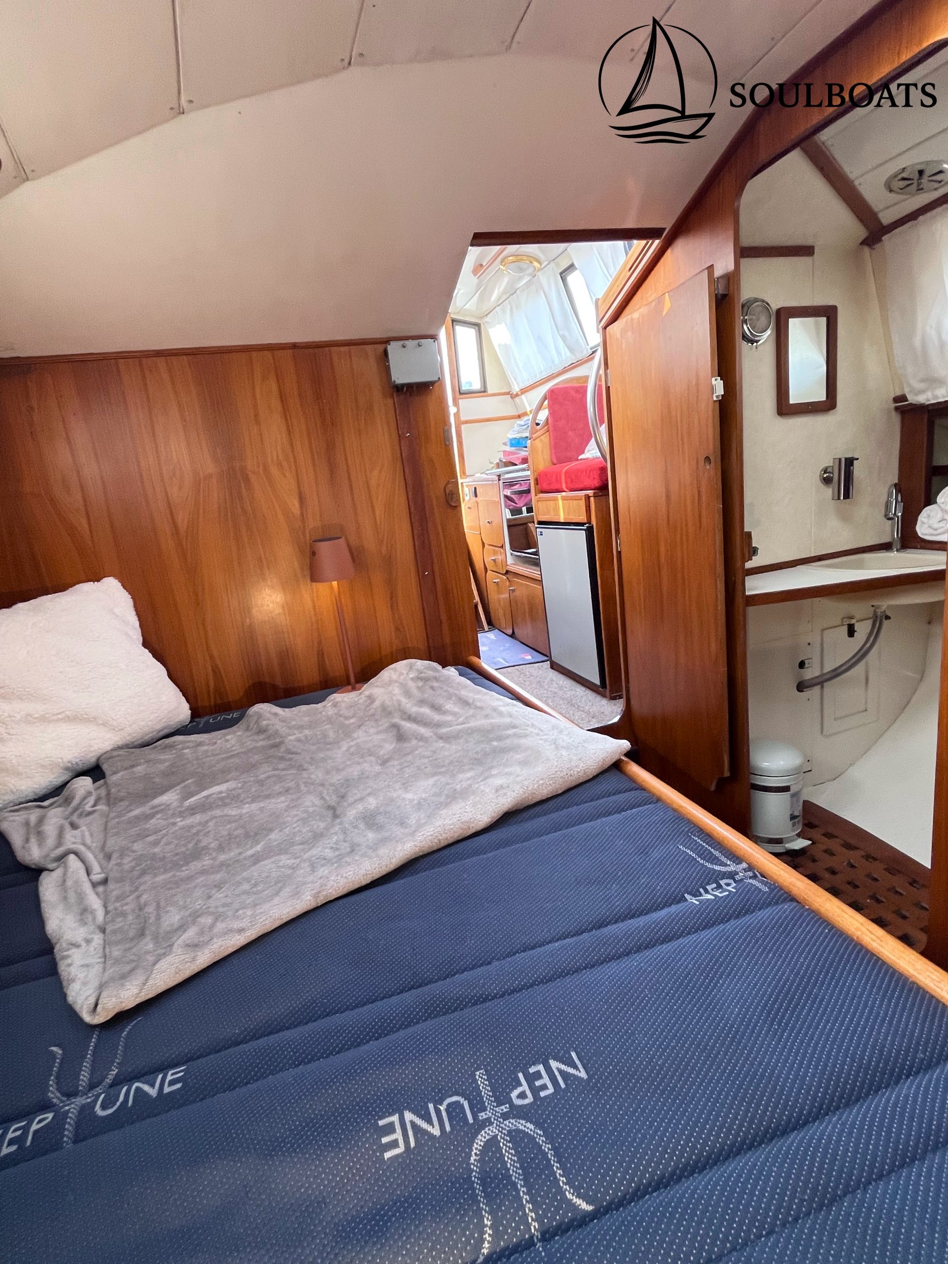 Technisch befindet sich das Schiff in ausgezeichnetem Zustand, alle Geräte sind funktionsfähig. Optisch innen könnten kleinere Lackierarbeiten vorgenommen werden. Außen, am Deck, hat ein Vorbesitzer versucht, das Schiff in hellem Weiß erstrahlen zu lassen; die Farbe löst sich jedoch inzwischen ab. Die Reste lassen sich problemlos entfernen, und darunter kommt das originale, gut erhaltene Gelcoat zum Vorschein.
