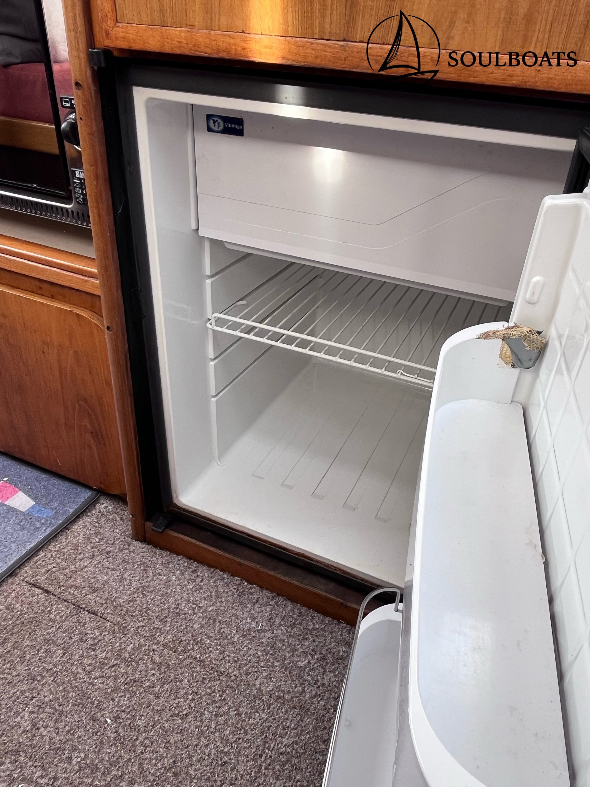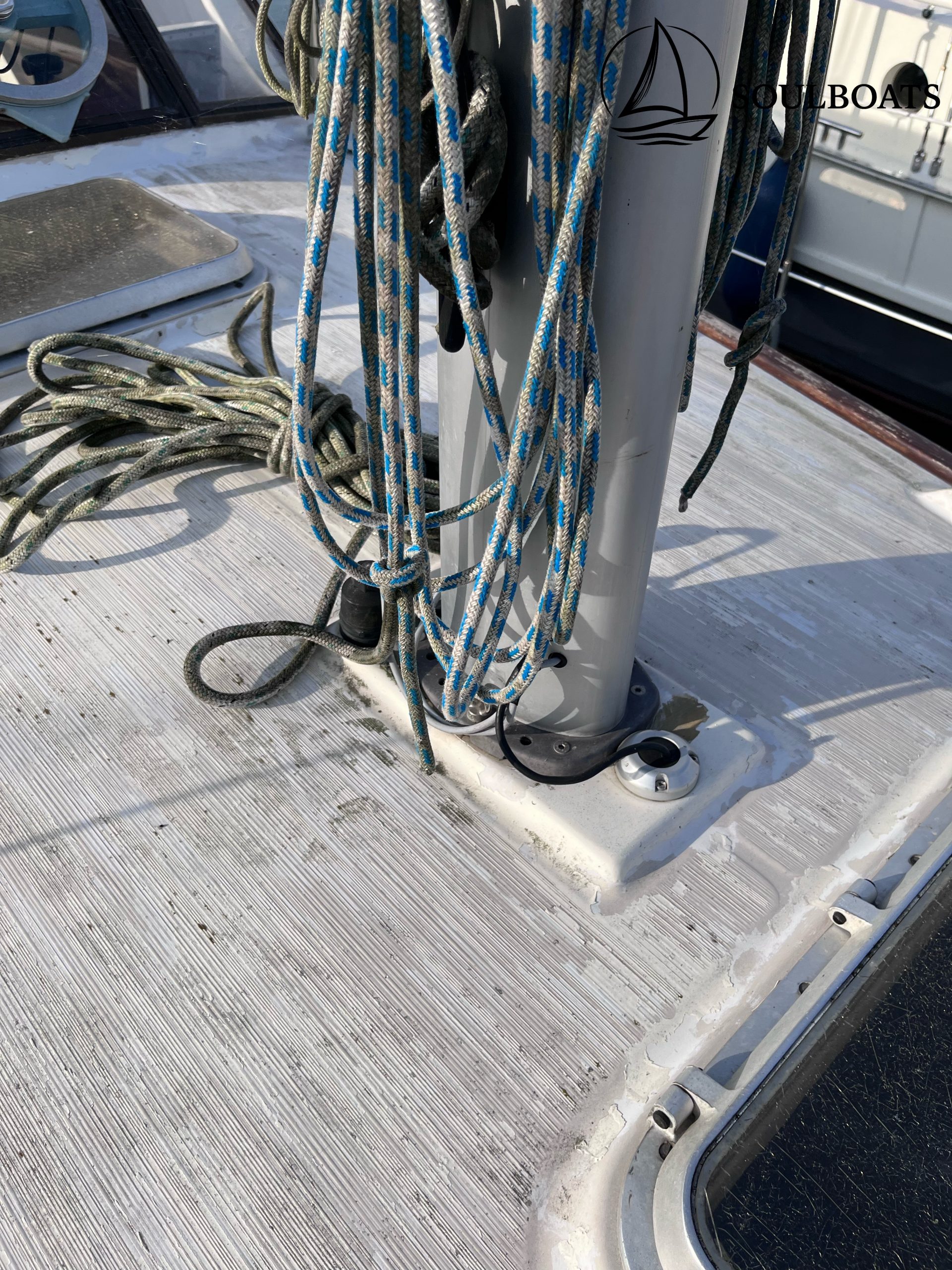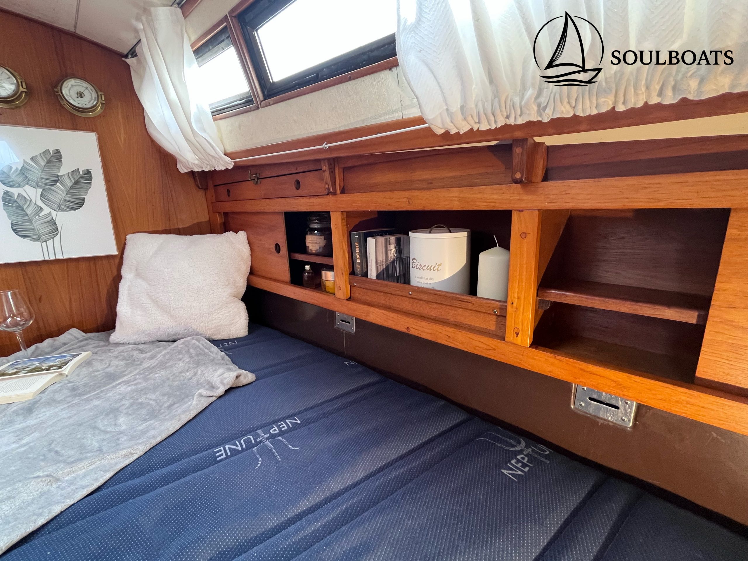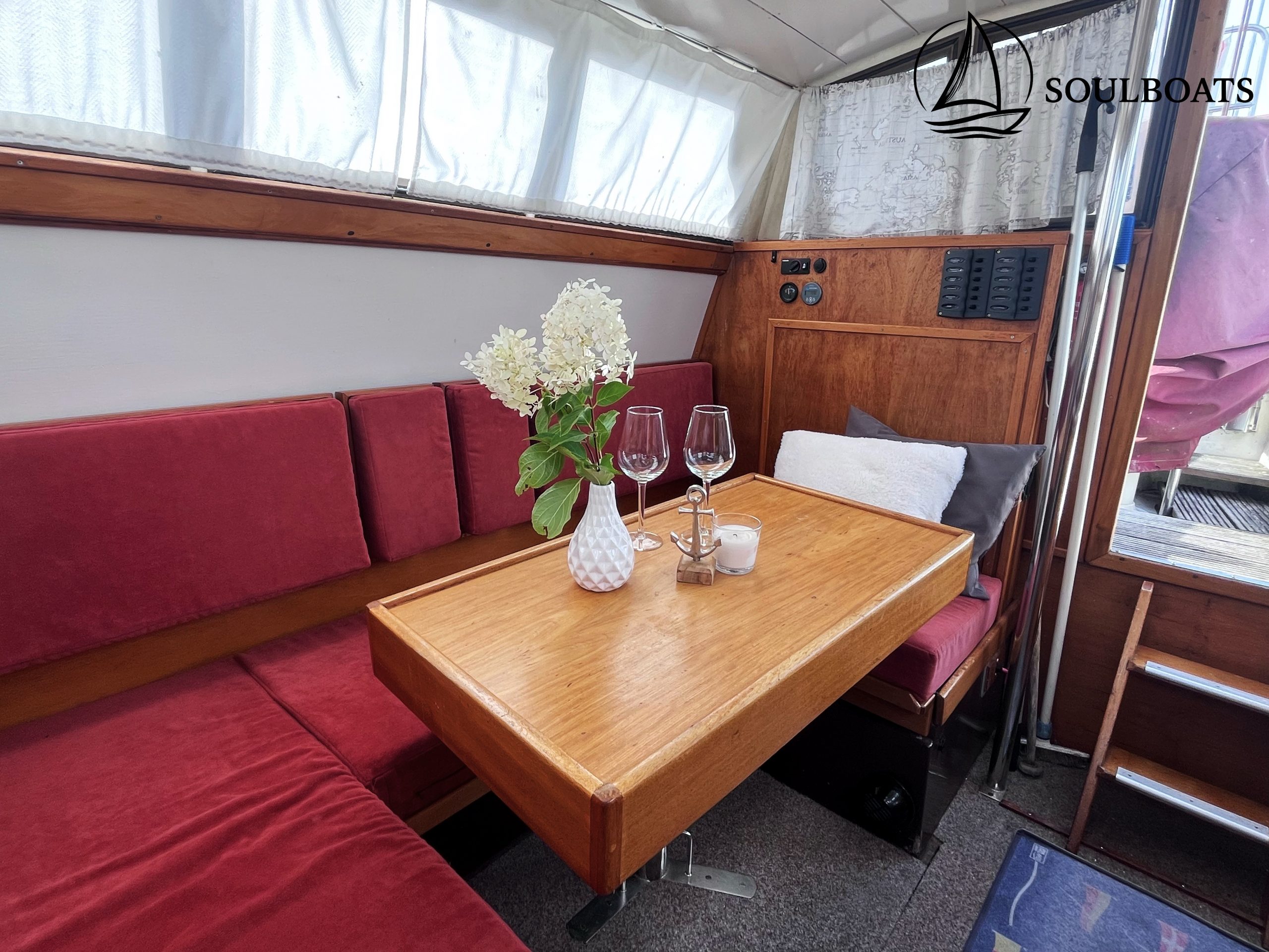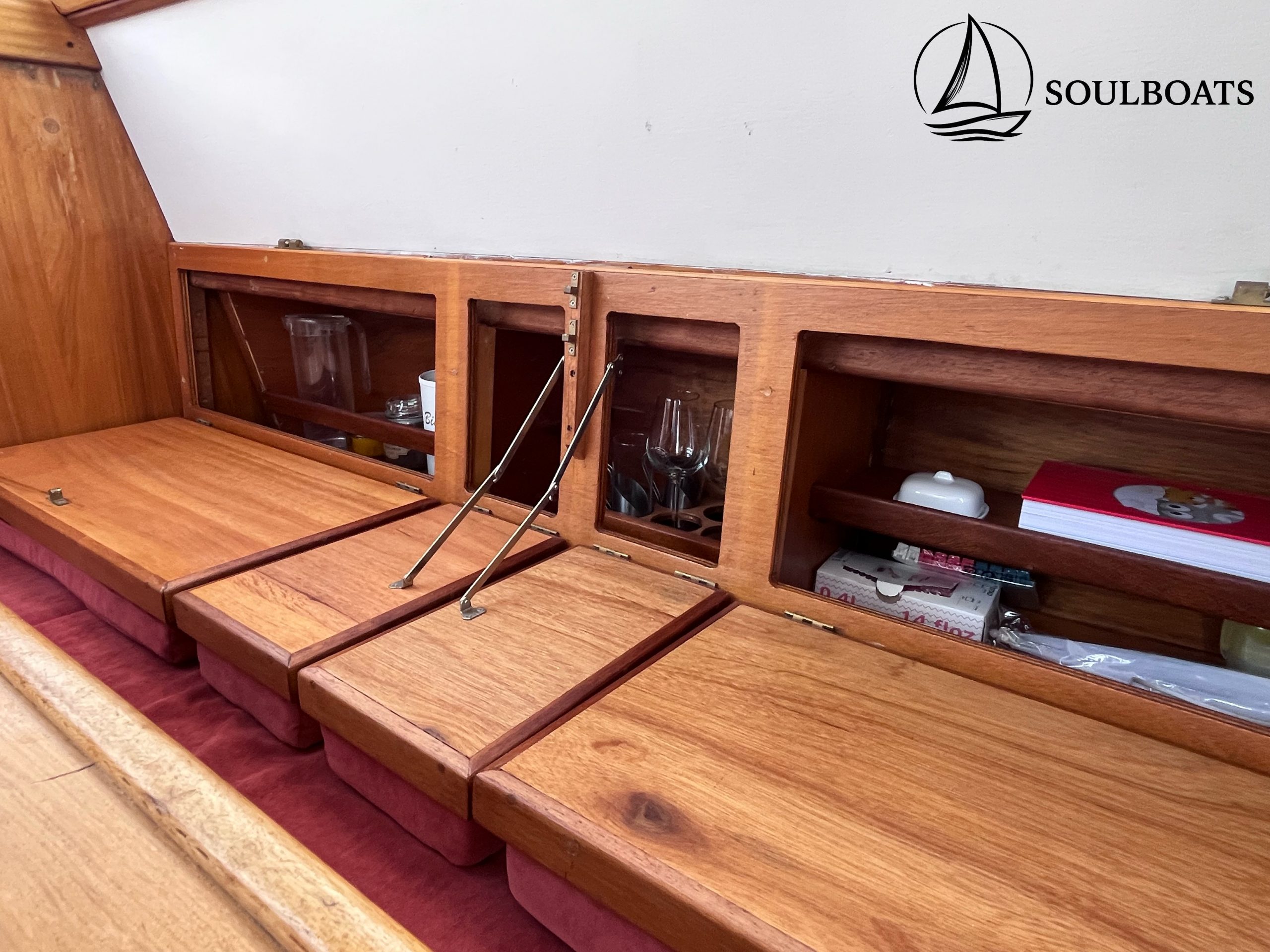 Technisch befindet sich das Schiff in ausgezeichnetem Zustand, alle Geräte sind funktionsfähig. Optisch innen könnten kleinere Lackierarbeiten vorgenommen werden. Außen, am Deck, hat ein Vorbesitzer versucht, das Schiff in hellem Weiß erstrahlen zu lassen; die Farbe löst sich jedoch inzwischen ab. Die Reste lassen sich problemlos entfernen, und darunter kommt das originale, gut erhaltene Gelcoat zum Vorschein.