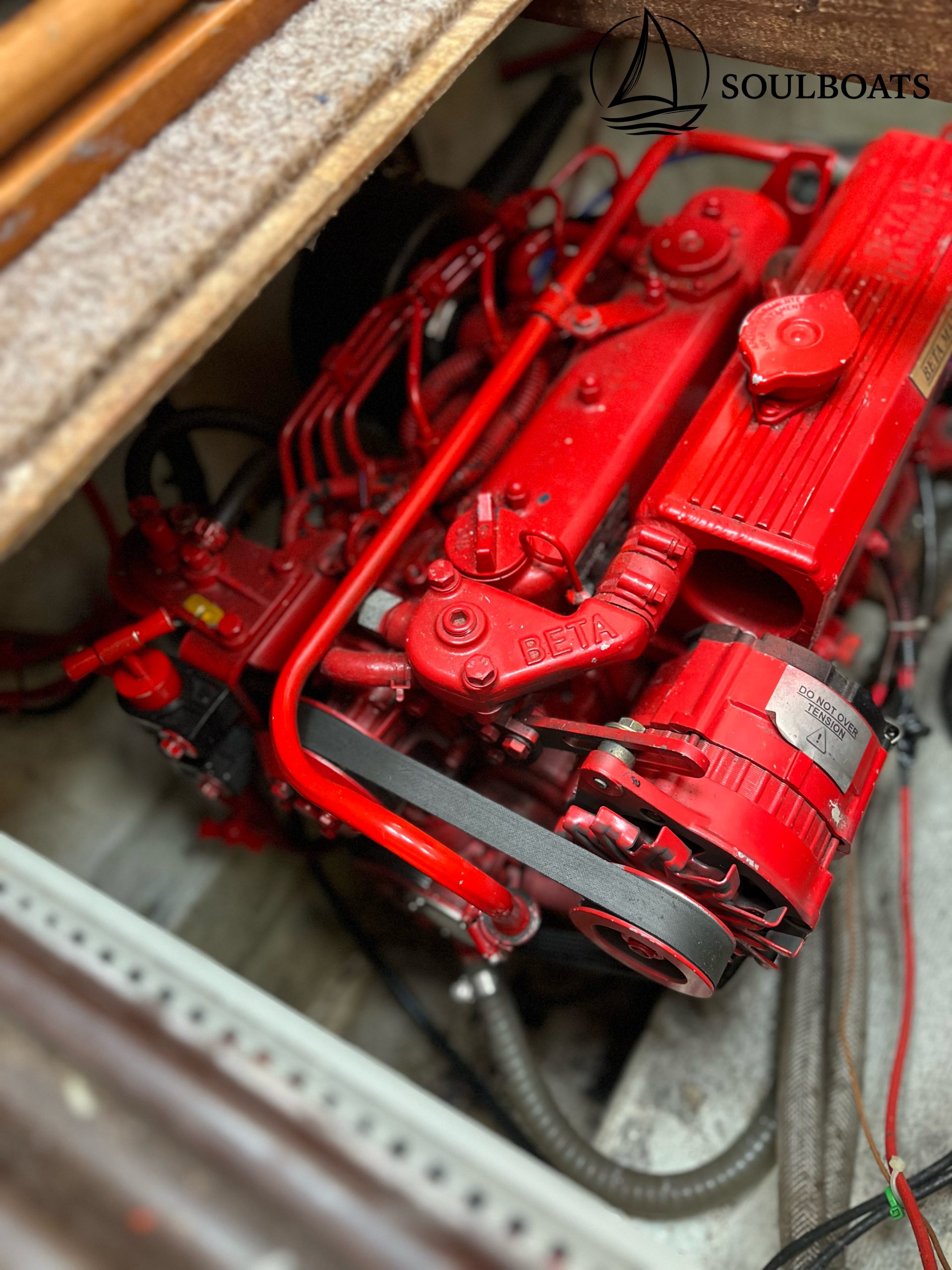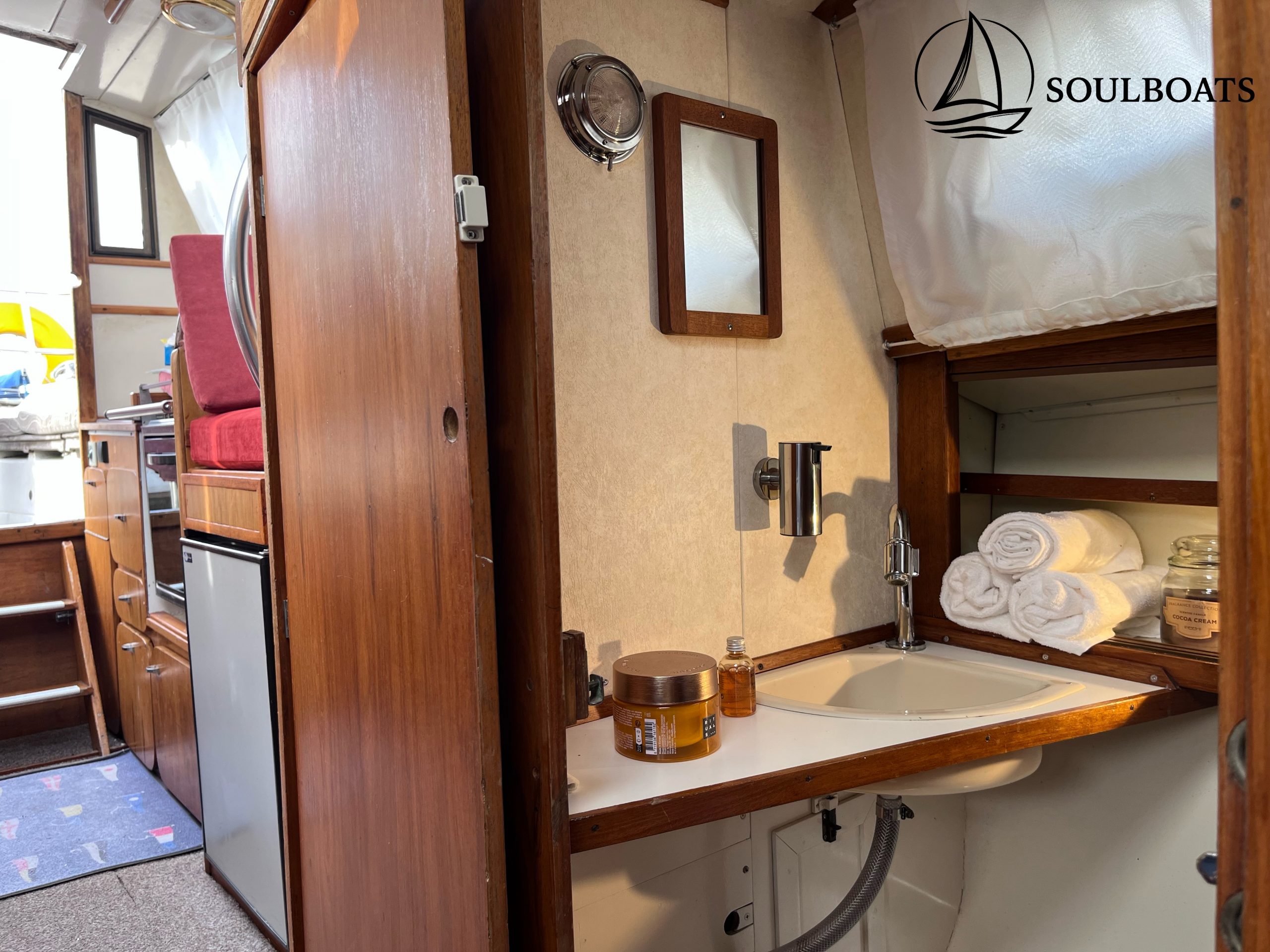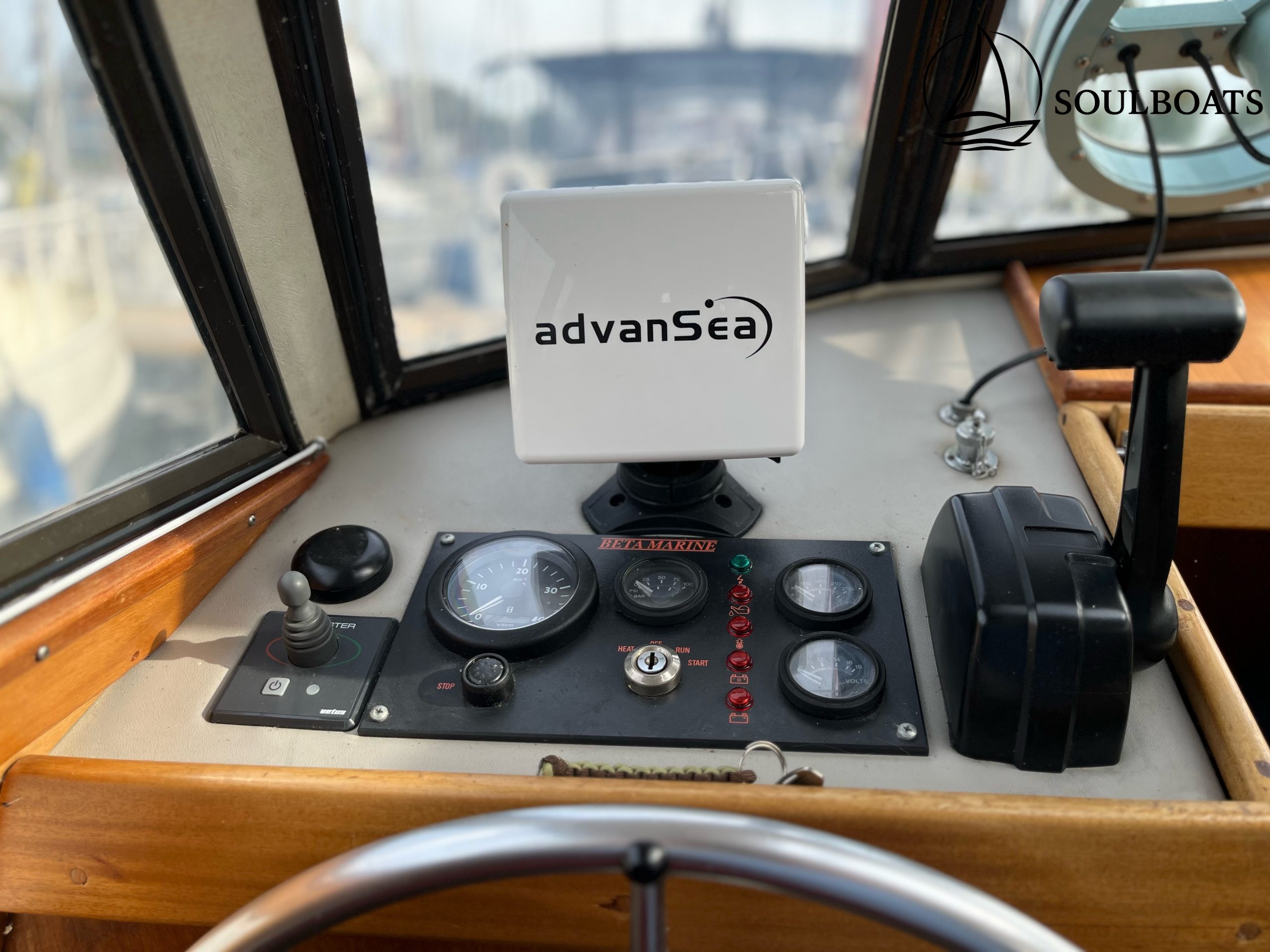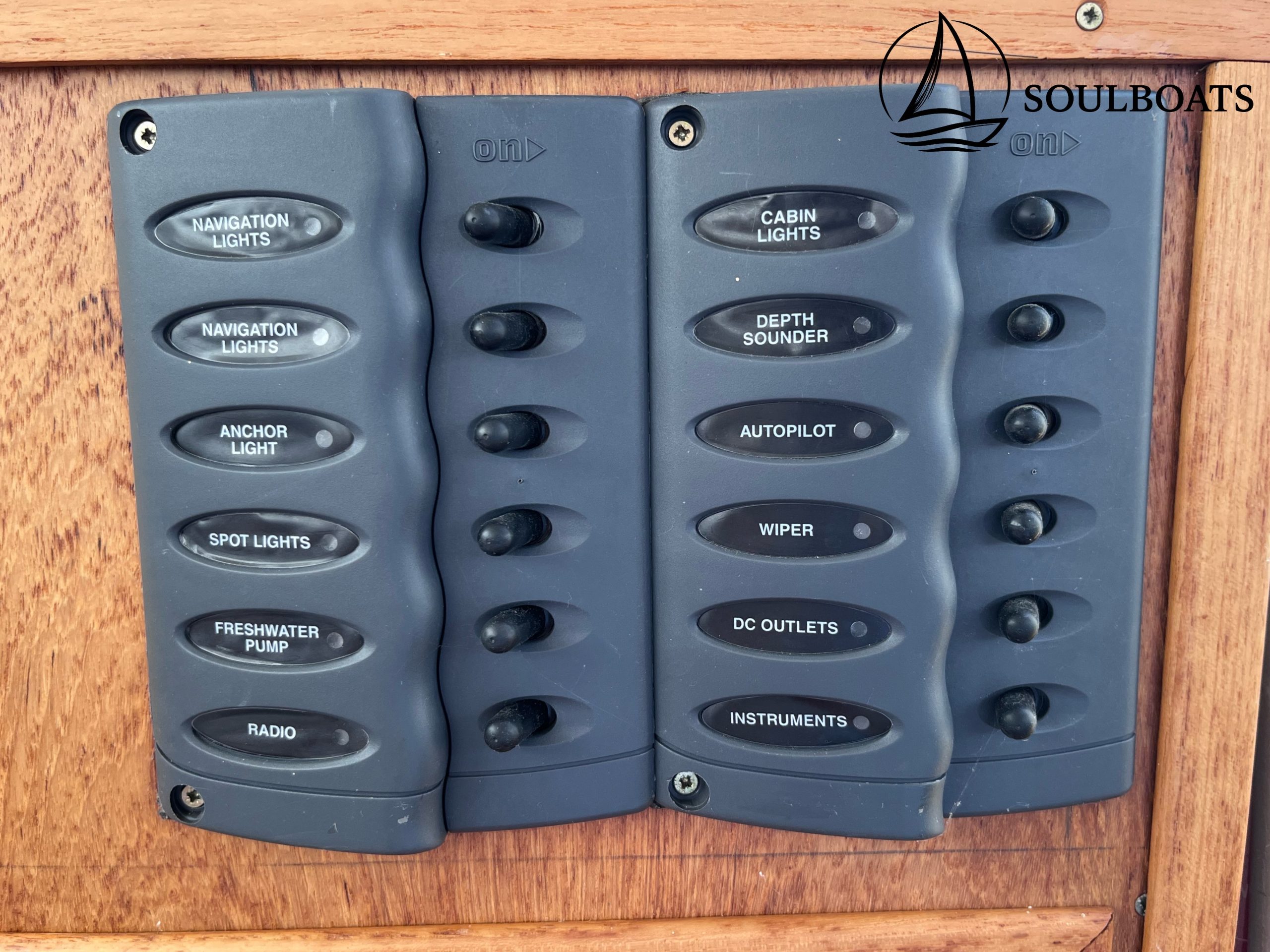 Technisch befindet sich das Schiff in ausgezeichnetem Zustand, alle Geräte sind funktionsfähig. Optisch innen könnten kleinere Lackierarbeiten vorgenommen werden. Außen, am Deck, hat ein Vorbesitzer versucht, das Schiff in hellem Weiß erstrahlen zu lassen; die Farbe löst sich jedoch inzwischen ab. Die Reste lassen sich problemlos entfernen, und darunter kommt das originale, gut erhaltene Gelcoat zum Vorschein.