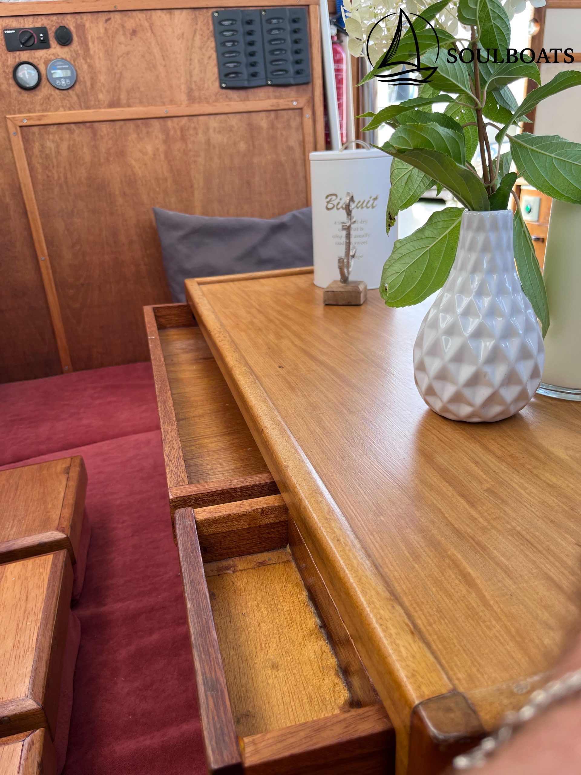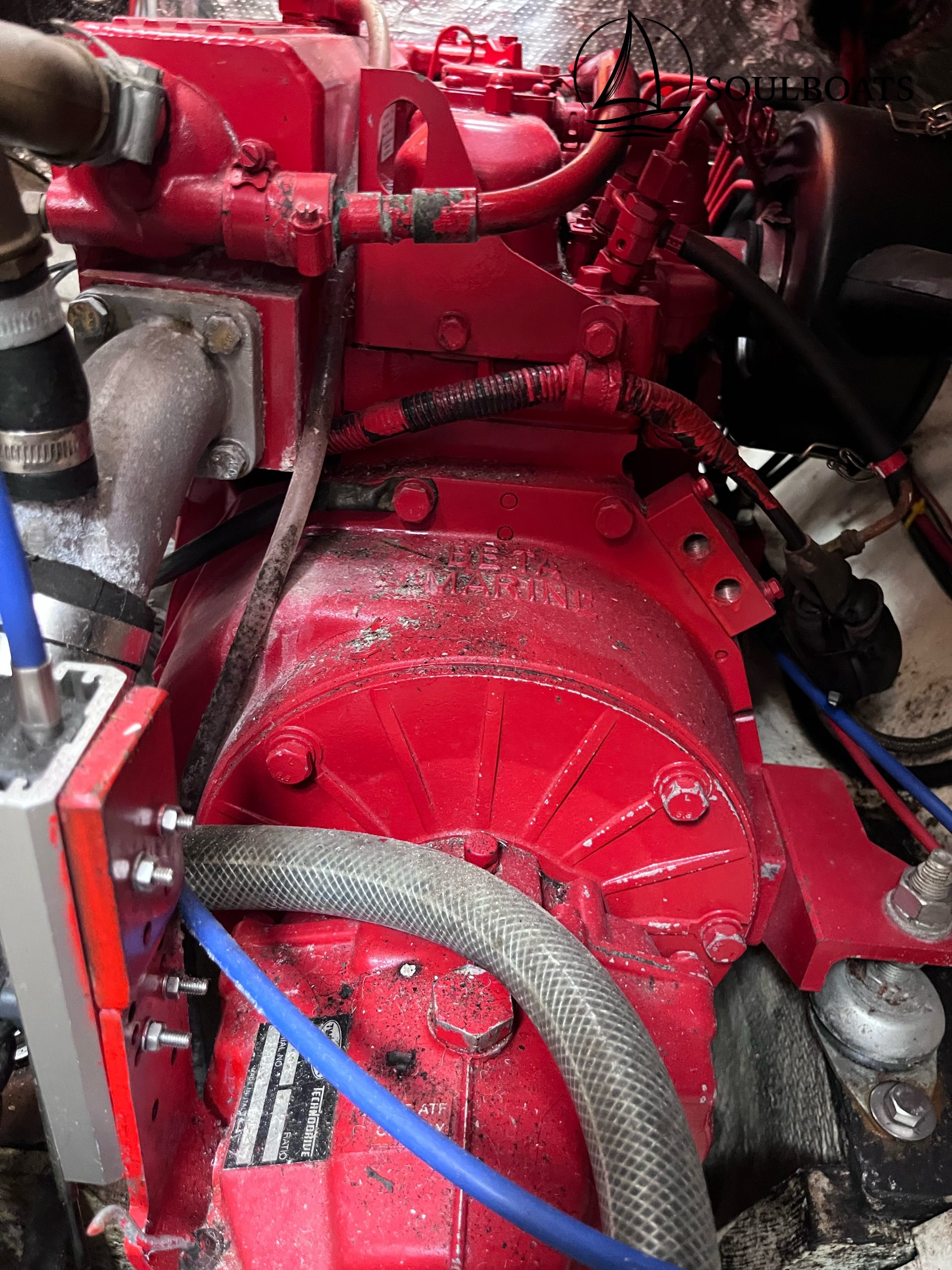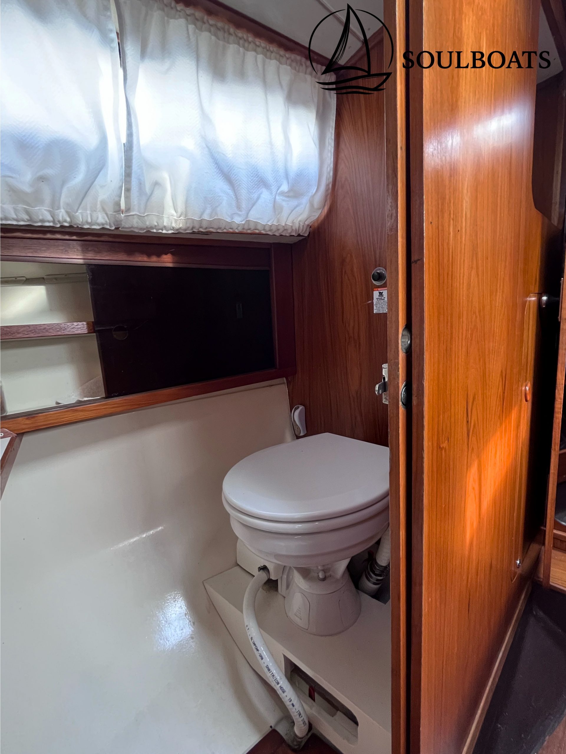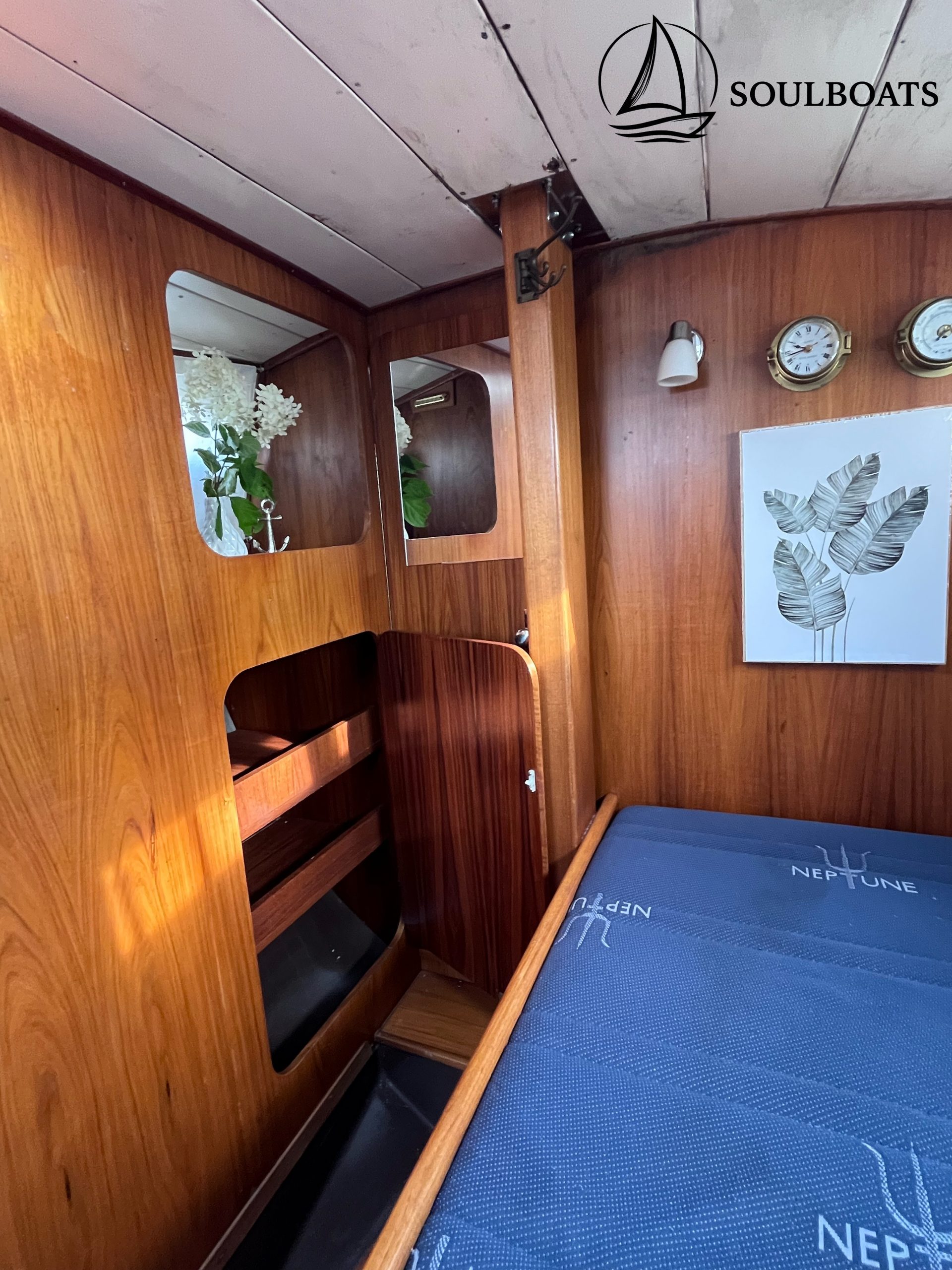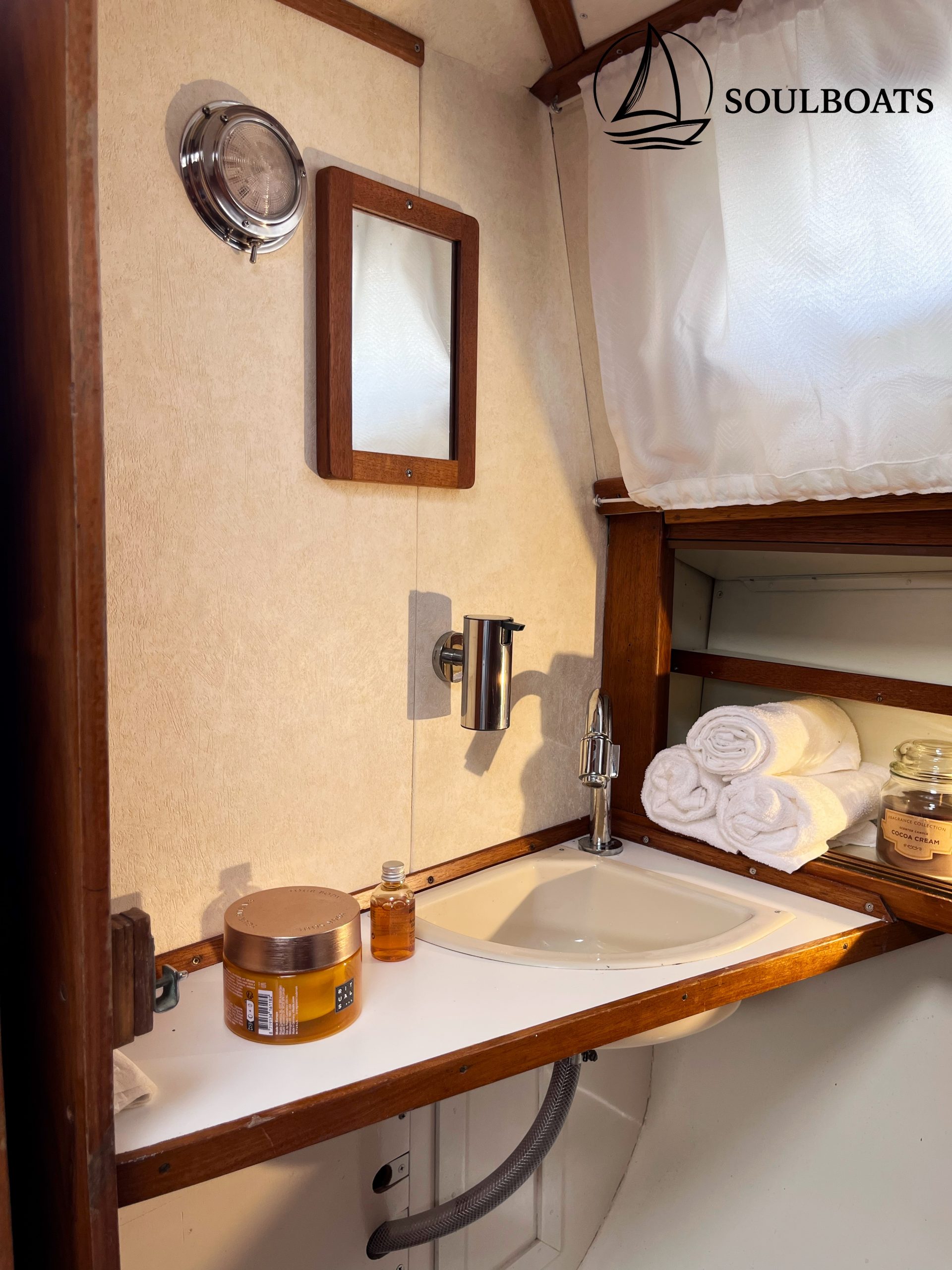 Technisch befindet sich das Schiff in ausgezeichnetem Zustand, alle Geräte sind funktionsfähig. Optisch innen könnten kleinere Lackierarbeiten vorgenommen werden. Außen, am Deck, hat ein Vorbesitzer versucht, das Schiff in hellem Weiß erstrahlen zu lassen; die Farbe löst sich jedoch inzwischen ab. Die Reste lassen sich problemlos entfernen, und darunter kommt das originale, gut erhaltene Gelcoat zum Vorschein.